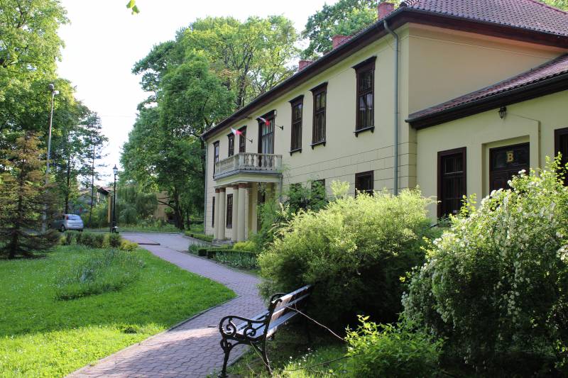 rozciąga się malowniczy Park Zdrojowy z licznymi starymi drzewami i