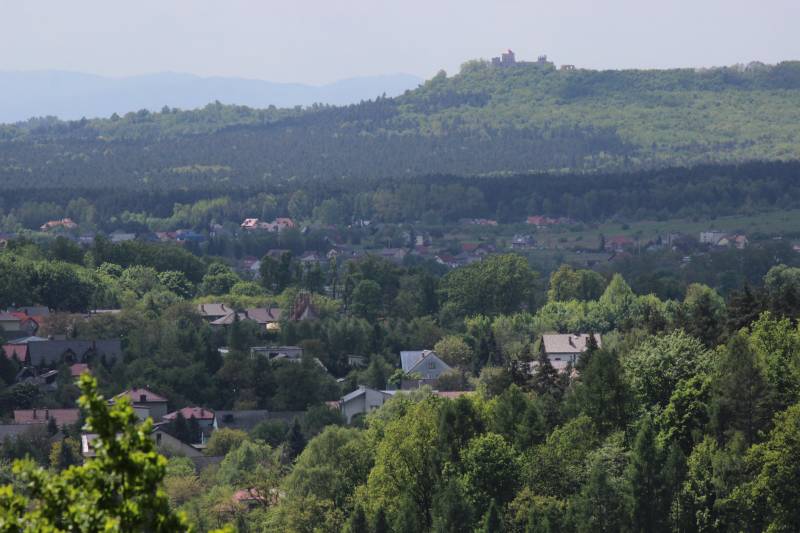 rozciąga się piękna panorama Krzeszowic i Garbu Tęczyńskiego z